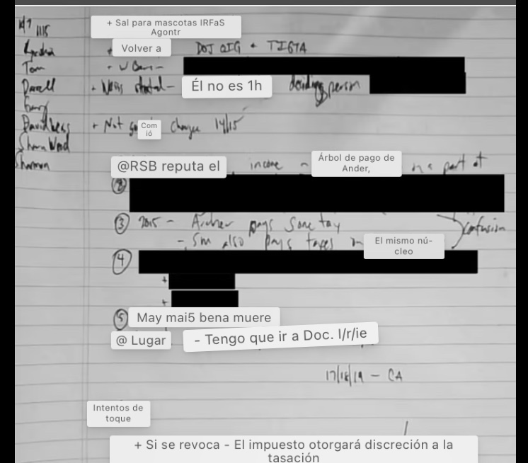 Los abogados de Shapley adjuntan la versión original de las «notas manuscritas contemporáneas» que redactan la información que aún no ha sido publicada por el Comité de Medios y Arbitrios.