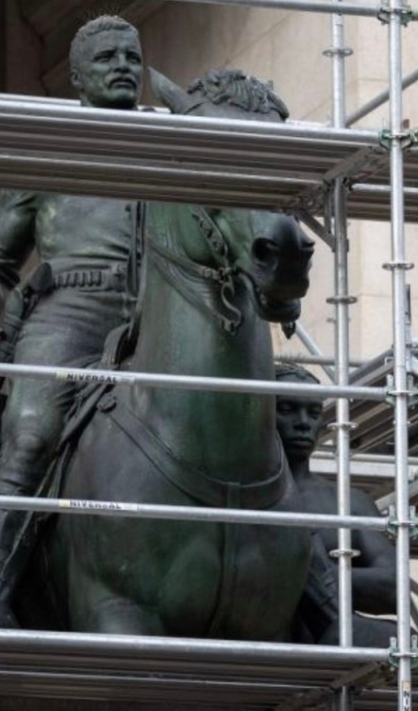 Otro monumento, que honra al 26o presidente de los Estados Unidos, Teddy Roosevelt, también ha sido derribado frente al Museo de Historia Natural de Nueva York.