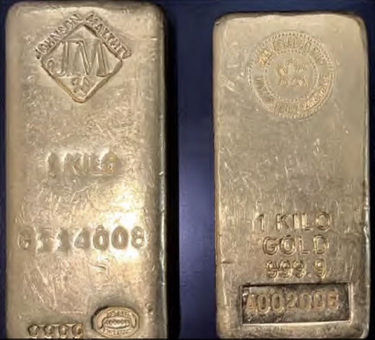 También encontró dos lingotes de oro de un kilogramo y once lingotes de oro de una onza.