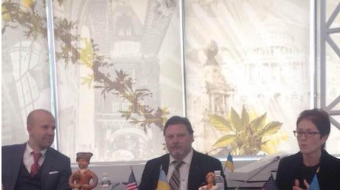 En una reunión del 7 de noviembre de 2017, Yovanovitch «comentó los recientes acontecimientos en las relaciones entre Estados Unidos y Ucrania y enfatizó la necesidad de esfuerzos constantes para implementar reformas clave» en el país, según la página del evento publicada por la USUBC. El embajador también se refirió a los esfuerzos anticorrupción y la reforma de Ucrania en el sector energético. El panel, que incluía a Pozharksyi (en la foto en el extremo izquierdo), respondió a las preguntas de los líderes empresariales en un formato de mesa redonda.
