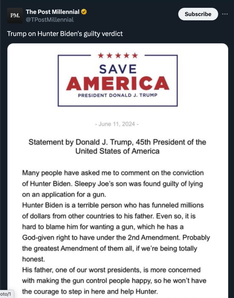 The National Pulse ha confirmado que una declaración del presidente Trump que se compromete a «ayudar» a Hunter, que circula en las redes socialesmedios de comunicación, es falso.